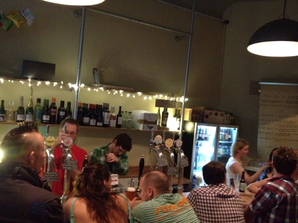 Your friendly neighbourhood beer pourers! From left behind the bar: Tyler (previously of Mr Foleys), Kitch and Claire.