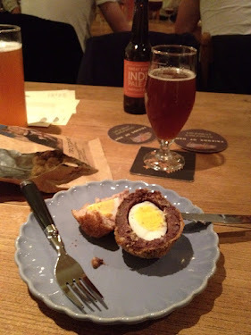 Black pudding scotch egg and Red Church India Pale Ale.