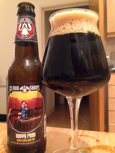 Hoppy Feet by Clown Shoes pours a total, evil, pitch black. So top marks in that respect.